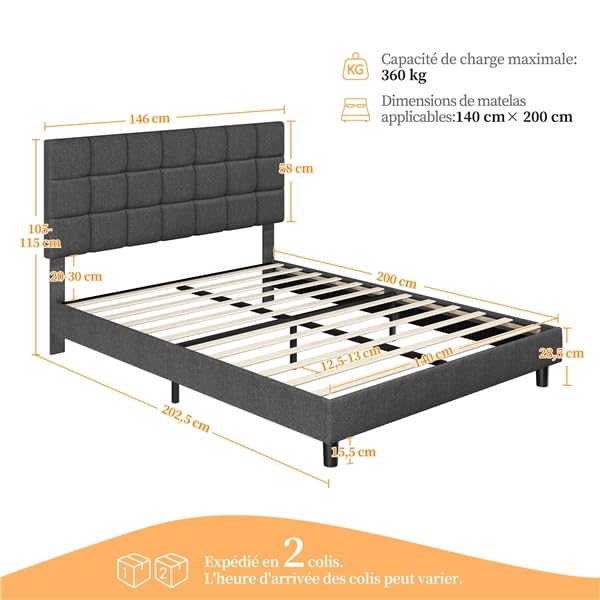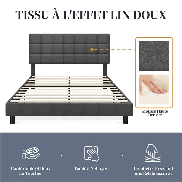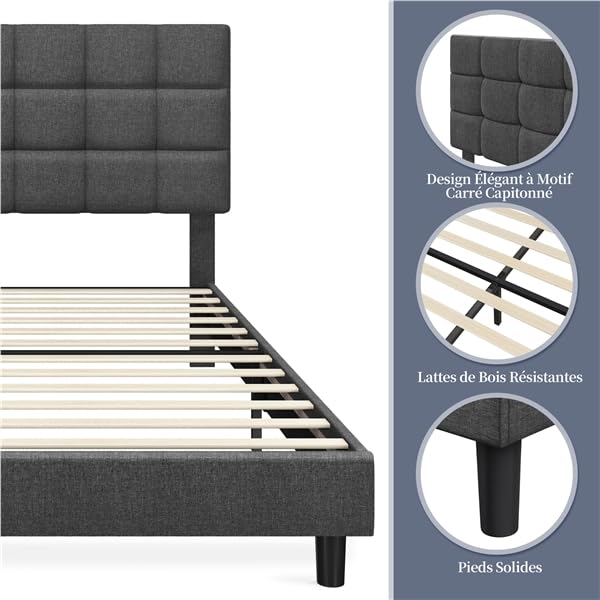 - ✨【Design tendance】Notre lit avec tête de lit vous séduira par son revêtement élégant et son capitonnage carré, qui lui confèrent une allure moderne et raffinée. Quel que soit le style de votre chambre, ce lit s’y intégrera parfaitement, créant une ambiance cosy.
