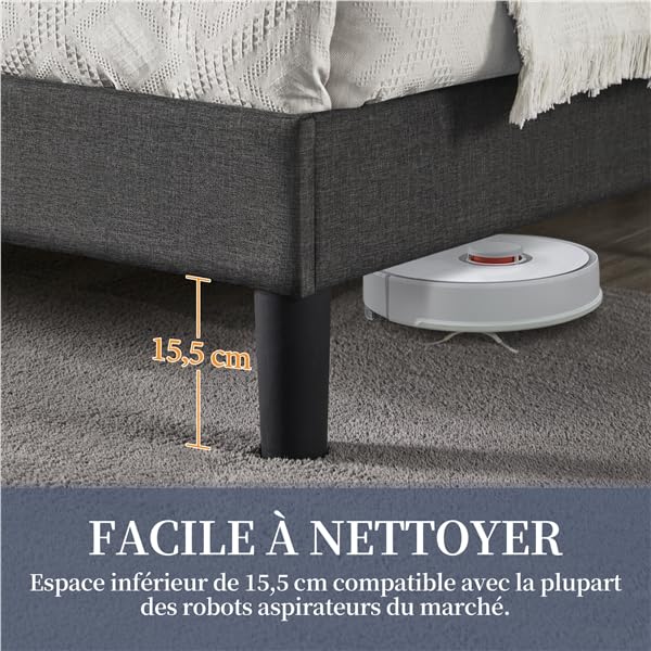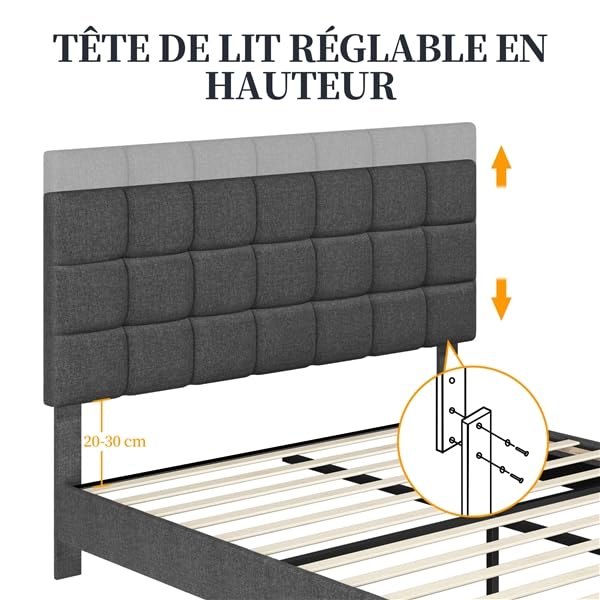 - ✨【Réglable en hauteur】 Ce lit en bois vous offre la liberté de choisir la hauteur de votre tête de lit capitonnée. Optez pour une hauteur de 106 cm ou de 116 cm. Ainsi, vous aurez votre propre cocon de douceur, pour vous détendre, lire ou rêver.
